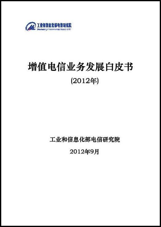 自2005年以来,工业和信息化部电信研究院持续跟踪和研究增值电信业务的发展动态,积累了权威的业务监测数据。为适应新形势,与业界分享我院在增值电信领域的研究成果,特推出《增值电信业务发展白皮书(2012年)》(以下简称《白皮书》),以期建立增值电信业务发展的年度发布制度,引导增值电信业务又好又快科学发展。